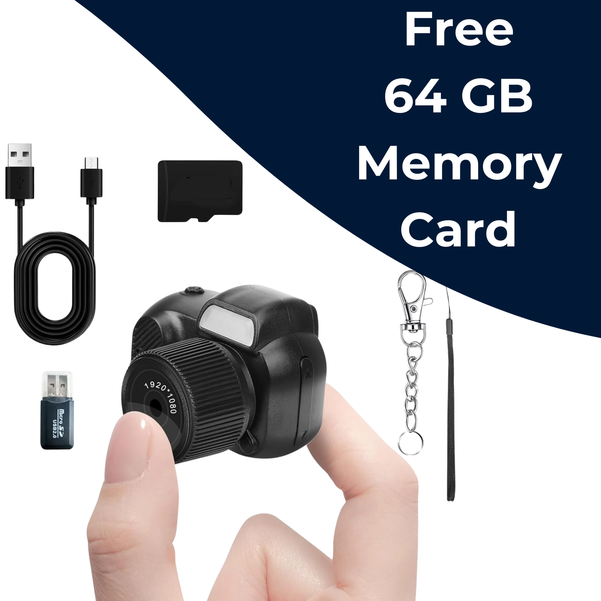 The MiniCam⢠supports microSD cards up to 128GB. Note: a 64GB card is included in every order. (This is more than enough for you to start recording)